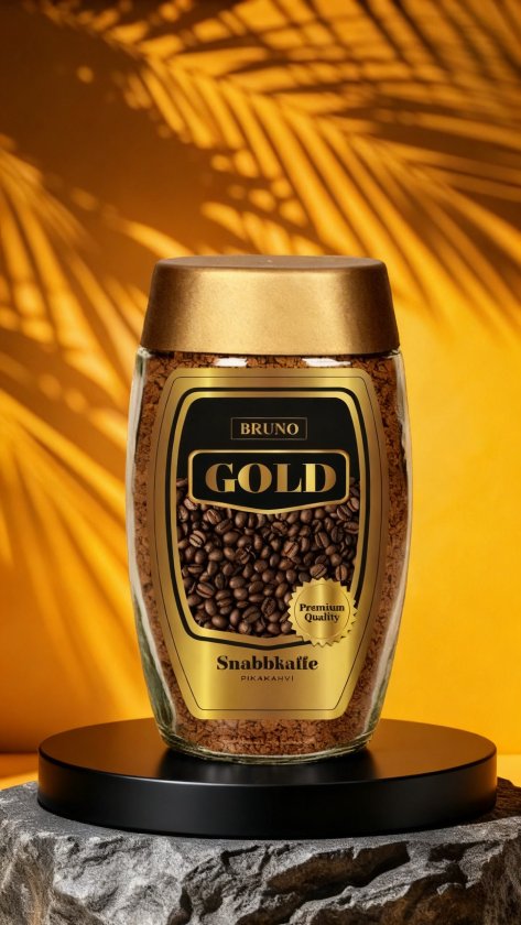 Vi är stolta över att presentera Bruno Snabbkaffe Gold – vårt eget varumärke inom kaffe. Ett noggrant utvalt snabbkaffe med fyllig smak och hög kvalitet, framtaget för att ge en perfekt kopp kaffe varje gång.