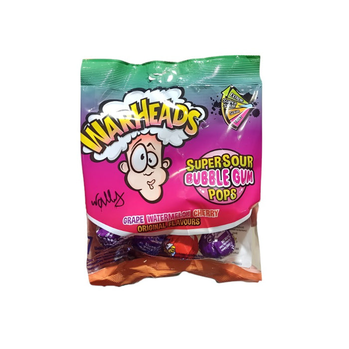 • Warheads Supersour Bubble Gum Pops Grape, Watermelon & Cherry 7 x 15 g