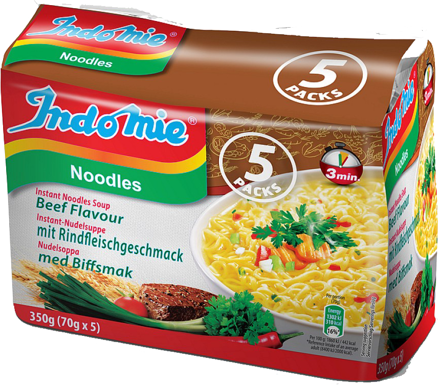 • Indomie Nudlar Biffsmak (5x 70g) x8